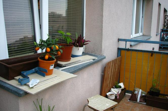 Jak urządzić mały balkon w bloku? Warto zacząć od dokładnego uprzątnięcia balkonu. Tak też było w przypadku naszej metamorfozy – wszystkie elementy, które nie były już przydatne, zostały usunięte. Z poprzedniej aranżacji zostały tylko podłużne doniczki.