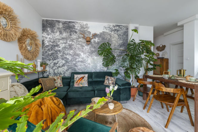 Monstera i paproć tworzą w sypialni egzotyczny kącik
