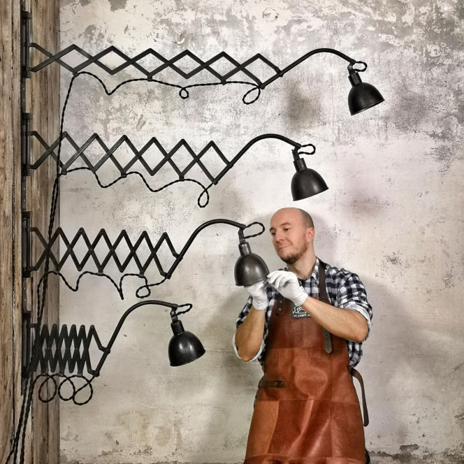 Radosław Nakonowski kupuje stare, zniszczone fabryczne lampy, albo wyszukuje takie na targach staroci i przywraca im dawną świetnosć