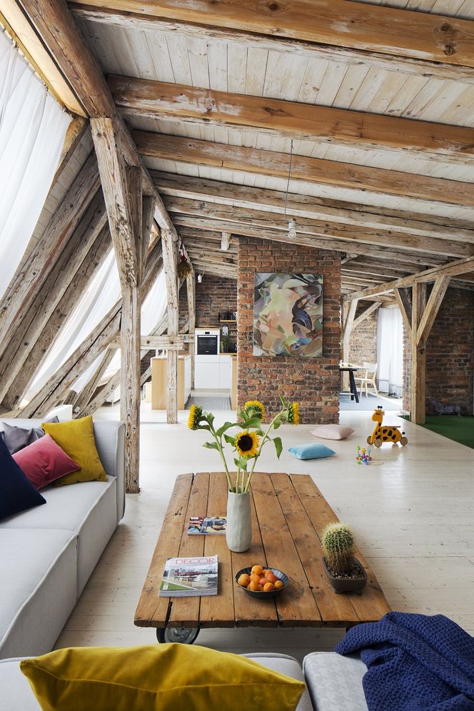 Styl loft lubi kreatywność! W przestronnych przestrzeniach można zestawiać np. chłodne akcenty z ciepłem naturalnego drewna