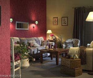 Pionowe prążki wydrążone w zaprawie gipsowo-cementowej przywodzą na myśl fakturę sztruksu. Dekoracja ściany wprowadza do wnętrza ciepły i przytulny klimat.