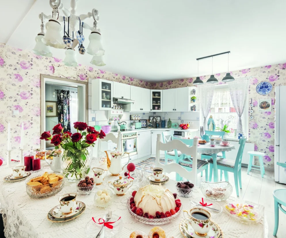 Świąteczna porcelana oferuje nieograniczone możliwości dekoracyjne. Białe talerze ze złotymi lub srebrnymi detalami pięknie komponują się z ciepłym światłem świec, a czerwone akcenty dodają wnętrzu przytulności i klasycznego świątecznego klimatu. Stół można wzbogacić o pasujące serwetki z delikatnym haftem, a także gałązki świerku ułożone między naczyniami.