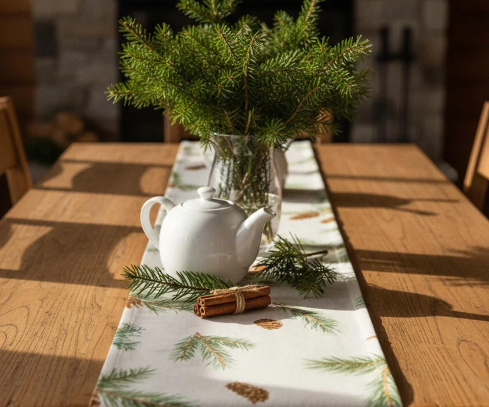 Jak dobrać rozmiar bieżnika świątecznego? Zmierz długość blatu i dodaj 50–60 cm. To bezpieczny zapas pozwalający na estetyczne opadanie materiału po obu stronach.