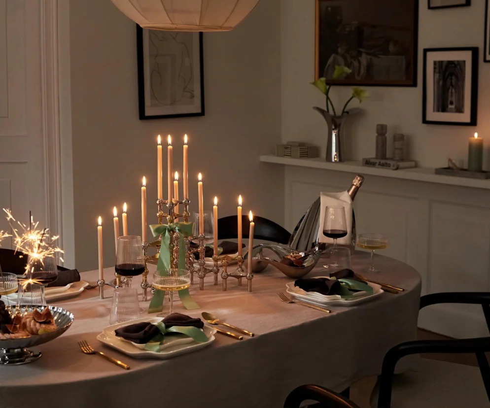 Kluczowy jest również wybór odpowiedniej zastawy – zwłaszcza takiej, która ma błyszczące elementy. Pamiętajmy też o przezroczystym albo barwionym szkle. Te dwa elementy pozwolą uzyskać elegancką aranżację stołu sylwestrowego.