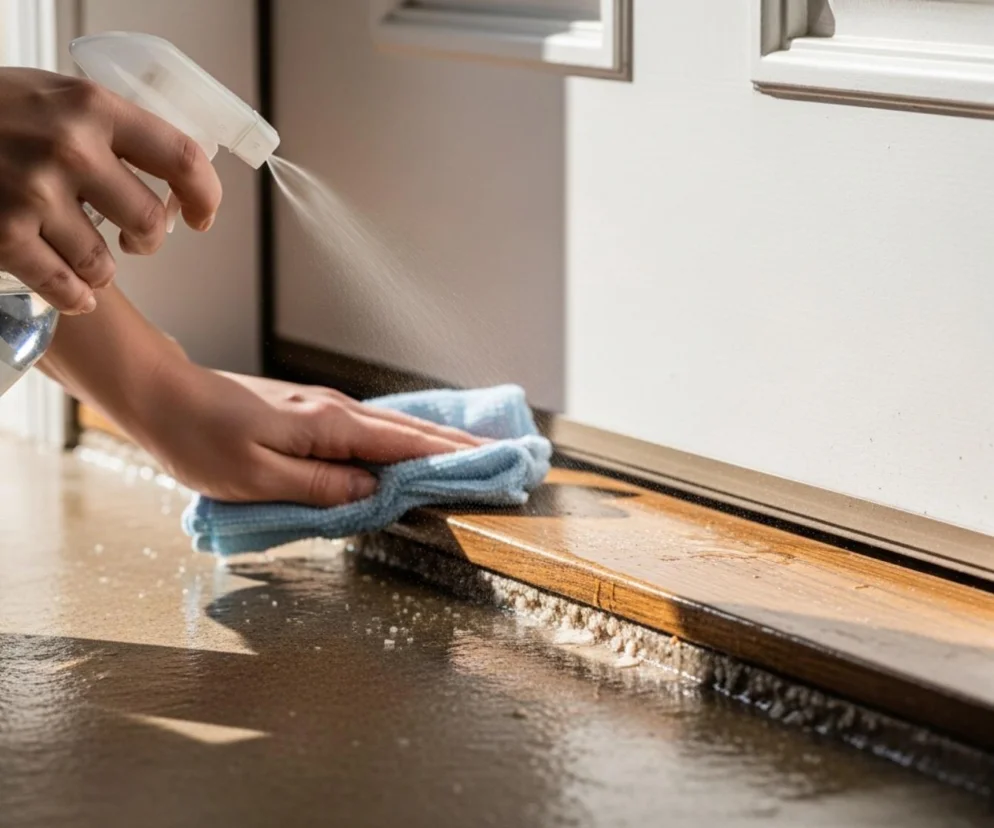 Tak przygotowany roztwór można wykorzystać do przetarcia progu, klamki i dolnej części drzwi. Cały zabieg zajmuje mniej niż minutę, a może znacząco poprawić wygląd wejścia.