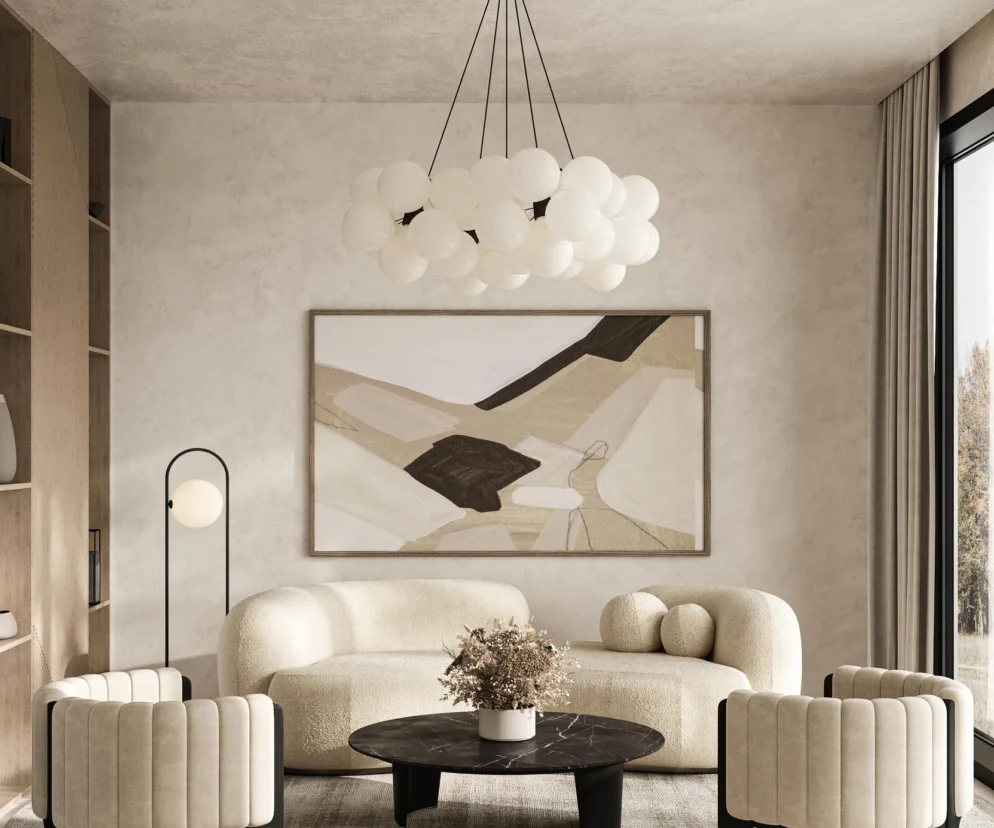 Wszelkiego rodzaju efekty dekoracyjne na bazie tynków wapiennych z szablonami, surowe betony, delikatne japandi czy wab-sabi to głównie salony, hole, sypialnie i klatki schodowe.