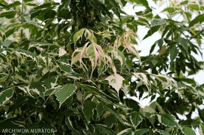 Największą ozdobą tej odmiany klonu jesionolistnego są liście, które kształtem przypominają liście jesionu. Liście są nieparzystopierzaste, składają się z 3-9 listków na krótkich łodyżkach, osiągają 15 cm długości. Poszczególne listki są lancetowate i zaostrzone, o brzegach nieregularnie piłkowanych. Młode liście są jasnoróżowe, starsze biało-zielone, stopniowo zieleniejące, jesienią przebarwiają się na żółto.