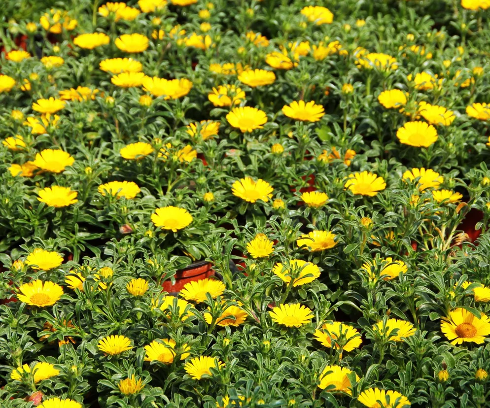 Asteriscus nadmorski kwitnie od końca maja do sierpnia. Intensywnie żółte kwiatostany (koszyczki) rozwijają się na szczytach pędów.