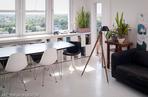 Pierwotny układ wnętrz (mieszkanie w bloku) był dość nietypowy jak na ten metraż: tylko dwa pokoje (salon i sypialna), widna kuchnia oraz stosunkowo mała łazienka. Usytuowanie ściany konstrukcyjnej oraz pionów, a także pasmo okien, wykluczające postawienie ścianki działowej w salonie, z góry narzuciły ograniczenia przy nowym projekcie wnętrz. Ale tam, gdzie zwykły człowiek widzi problem, architekt szuka rozwiązań. Właściciele lubią wyzwania i wierzą, że dobry projekt wnętrz powstaje nie wtedy, kiedy wszystko wolno, ale wtedy, gdy pojawiają się przeszkody; zresztą w każdym mieszkaniu są elementy, z którymi po prostu trzeba się pogodzić. Wady zamienili więc w zalety i powstały nowoczesne wnętrza. Przenieśli kuchnię do salonu, a w jej miejscu, od północnej, chłodniejszej strony, umieścili sypialnię. Zrezygnowali w mieszkaniu z przedpokoju: po otwarciu drzwi wejściowych wkracza się od razu do białej, ponad 30-metrowej przestrzeni, w której toczy się codzienne życie. Aranżacja salonu łączy wszystkie funkcje, co dało efekt taki, jakbyśmy w salonie mieli kawalerkę, czyli przedpokój, kuchnię i salon w jednym, mówią architekci. Zdecydowali się również na przebicie w ścianie otworu do drugiego pomieszczenia, w którym była kiedyś sypialnia, a teraz jest pracownia, by połączyć okna w jeden panoramiczny ciąg. Dzięki temu salon z kuchnią optycznie wydają się większe.