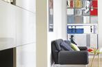Projekt wnętrz tak naprawdę był uzależniony od wybrania odpowiedniego miejsca na ekspozycję kolekcji sztuki. We wnętrzu, gdzie pierwsze skrzypce grają obrazy, najważniejsze okazuje się zapewnienie im minimalistycznego otoczenia. Wówczas, najlepszym rozwiązaniem są stonowane materiały wykończeniowe, które uwagę przykują teksturą, a nie kolorem. Pokój dzienny został zaprojektowany jako nowoczesne wnętrze, w którym dominuje biel oraz jasna szarość. Taki duet kolorystyczny zapewnia optymalne warunki dla bohaterów wnętrza - kolekcji sztuki.