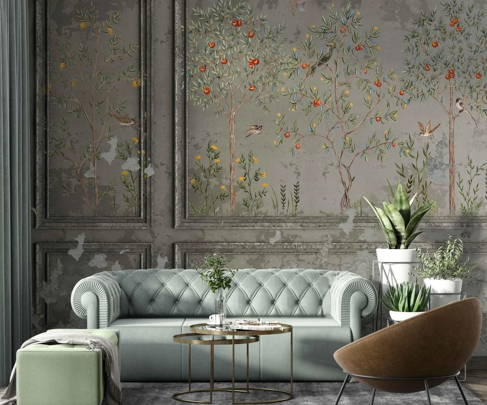 Ten trend w urządzaniu wnętrz w 2025 jest bardzo widoczny. Przypomnijcie sobie wnętrza domów babć - żakardy, wypukłe tapety, narzuty. Teraz też tak można urządzić salon. Modne są naturalne materiały, takie jak:
