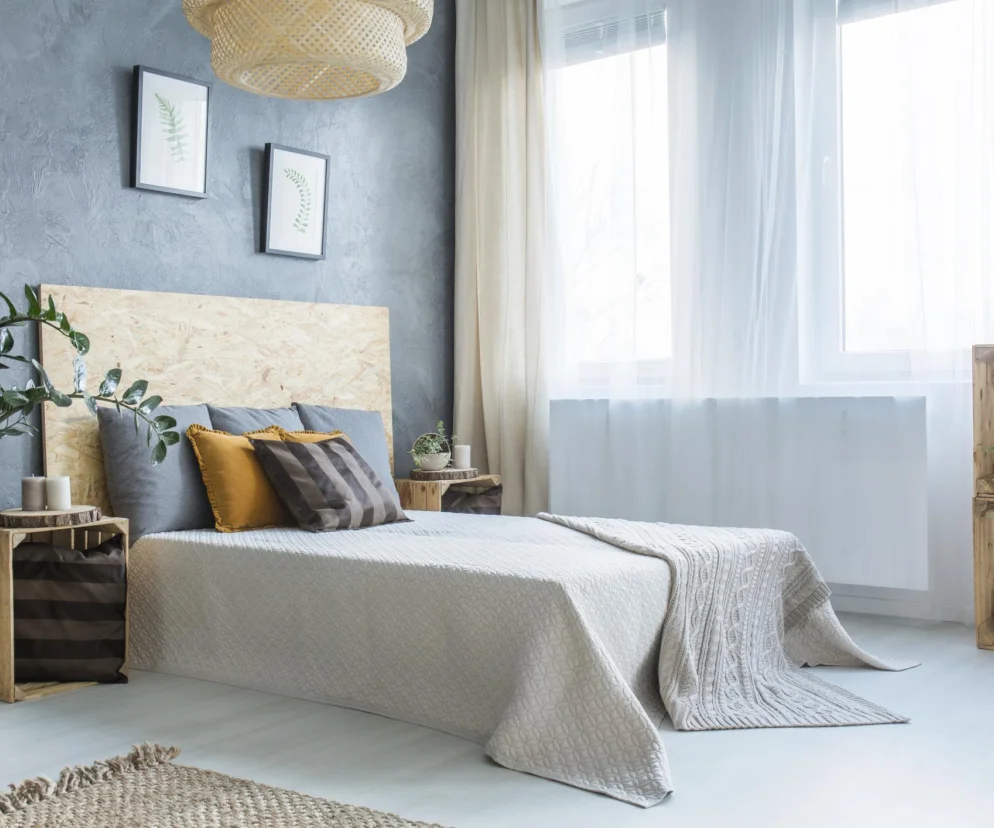 W małym pomieszczeniu nie najlepiej odnajdzie się królewskie łoże z baldachimem, które zajmuje sporo miejsca, a poza tym jest ciężkie optycznie i może przytłaczać sypialnię. W zamian postawmy na prostą formę łóżka oraz lekkość optyczną, którą zapewnią ją, np. jasne kolory.