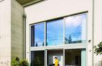 Narożne przeszklenie dwóch ścian sypialni (praktycznie na całej szerokości pomieszczenia) umożliwiło swobodne wpadanie światła do wnętrza i możliwość podziwiania panoramicznego widoku od bladego świtu po zmierzch. Zmienna kolorystyka i natężenie światła dziennego wpływa realnie na kolorystykę wnętrza sypialni, zaś jej minimalistyczny wystrój (drewno na podłodze, szara kolorystyka w tekstyliach, ograniczenie się wyłącznie do niezbędnych mebli) nie odwraca uwagi od roli architektury we wnętrzu. Cała uwaga skupiona jest bowiem na oknach, balkonie i... widoku. Aby zachować priorytet komfortu przebywania w sypialni z ogromnymi oknami, wzdłuż linii sufitu zamontowano subtelne karnisze, które stają się kompletnie nie widoczne po upięciu zasłon. Taki sposób montażu karniszy dodatkowo optycznie podwyższył wnętrze sypialni, a jednolity odcień antracytowych zasłon wtopił się w minimalistyczną konwencję wystroju wnętrza.