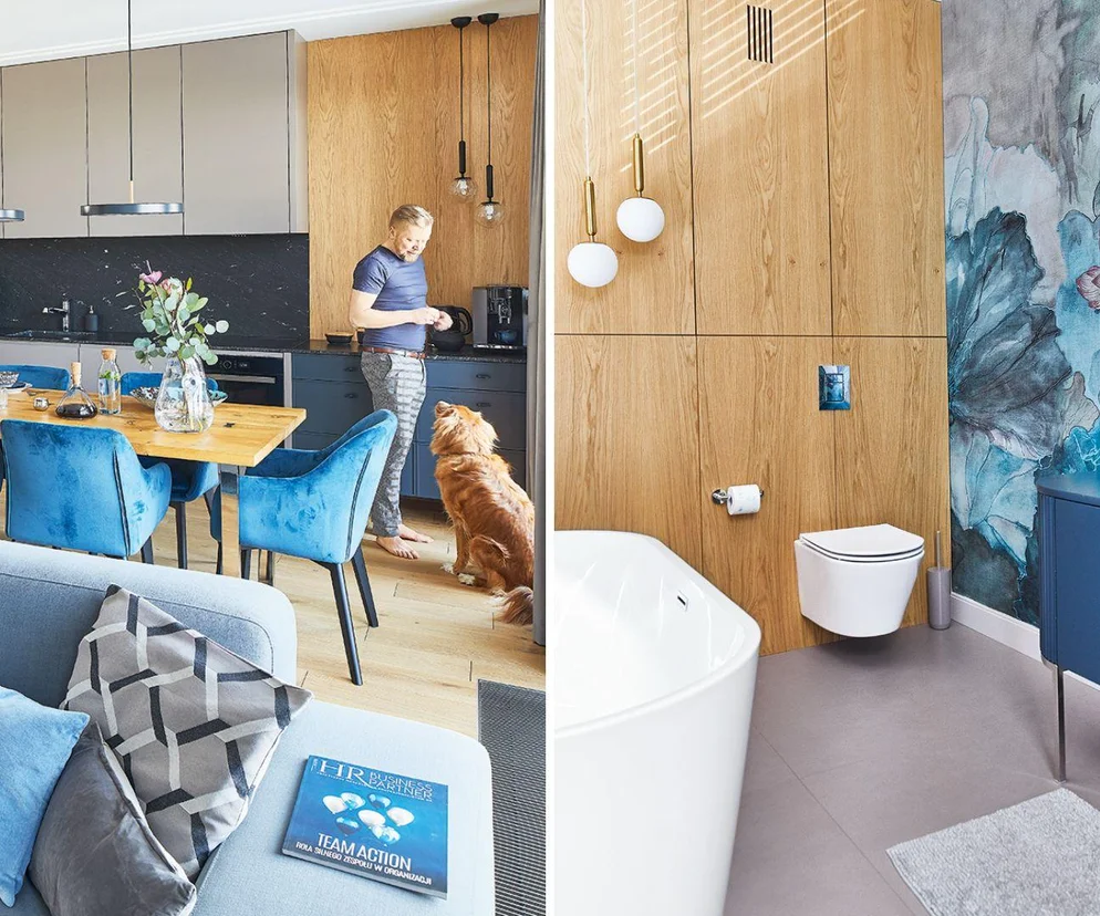 Nowoczesne mieszkanie w Gdyni muśnięte kolorem niebieskim. Zdjęcia