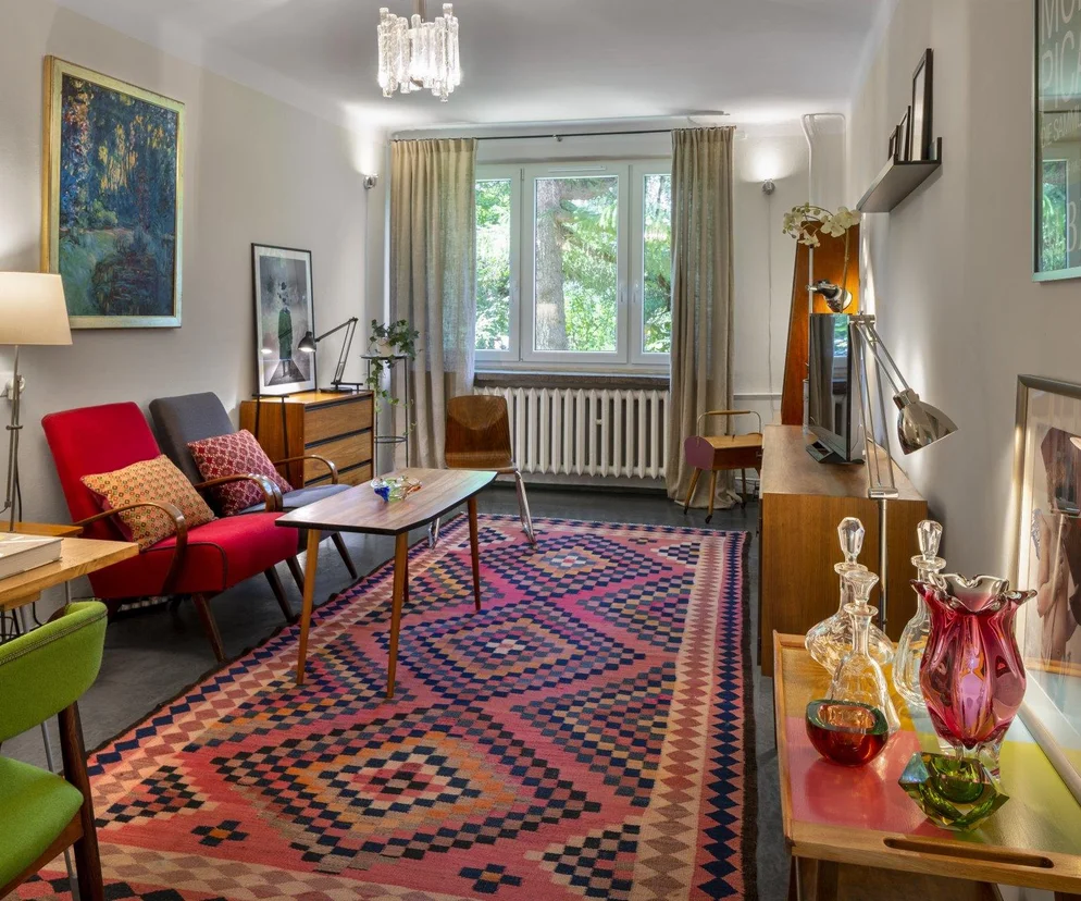 - Lepsze będą dwa kwadratowe czy okrągłe dywany niż jeden podłużny. Dywany powinny mieć wzory poprzeczne albo koncentryczne.