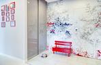 Aranżacja korytarza zachwyca nieszablonowym pomysłem. Jest to swojego rodzaju kontynuacja komiksowej opowieści. Projektanci zdecydowali się na wprowadzenie do przestrzeni nieco klimatu parkowego. Dlatego też, jedna ze ścian wraz z drzwiami wejściowymi została pokryta tapetą z graficznym motywem. W przedpokoju wykorzystano także duże lustro, dzięki czemu niewielka przestrzeń została optycznie powiększona. W lustrze „przeglądają” się parkowe drzewa oraz ławeczka. Lustrzane odbicie sprawia wrażenie niekończącej się alejki.