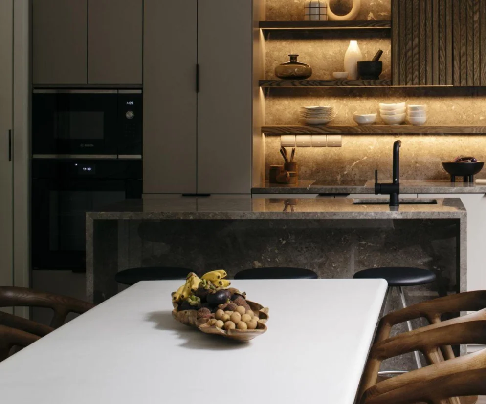 Apartament został zaprojektowany jako otwarta, płynna przestrzeń, pozbawiona ostrych granic i sztywnych podziałów. Pozwala domownikom naturalnie odnajdywać własne miejsca i rytuały, bez narzucania jednego scenariusza użytkowania.