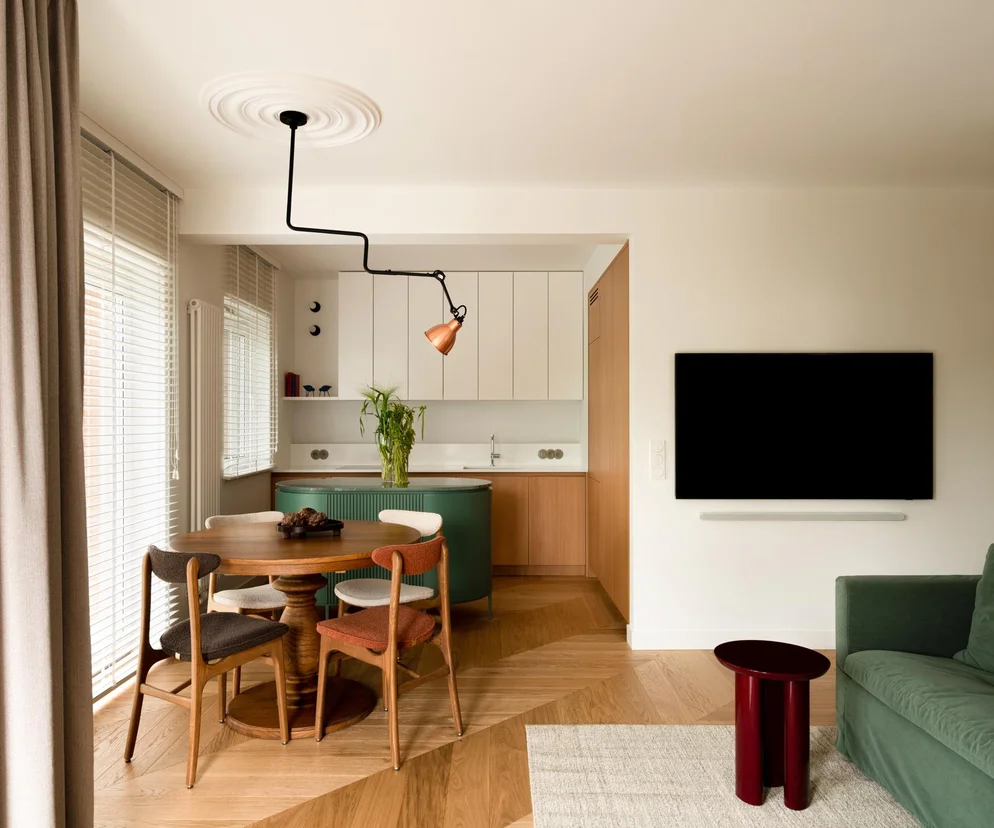 Chciałam, aby przestrzeń nie zamykała mieszkańców, ale ich otulała. Dlatego zamiast zamykać strefy, postawiłam na otwarty układ, gdzie funkcje rozdziela się nie ścianami, a materiałami, kolorami i detalami.